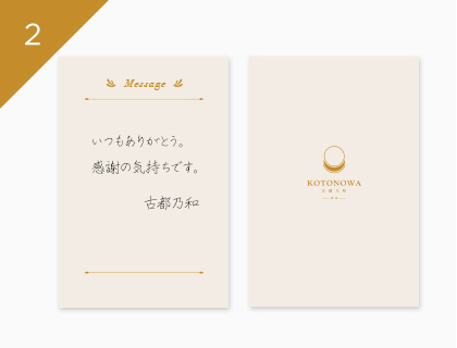 KOTONOWAオリジナルメッセージカードを無料でお付けできます。購入時にメッセージをご指定ください。